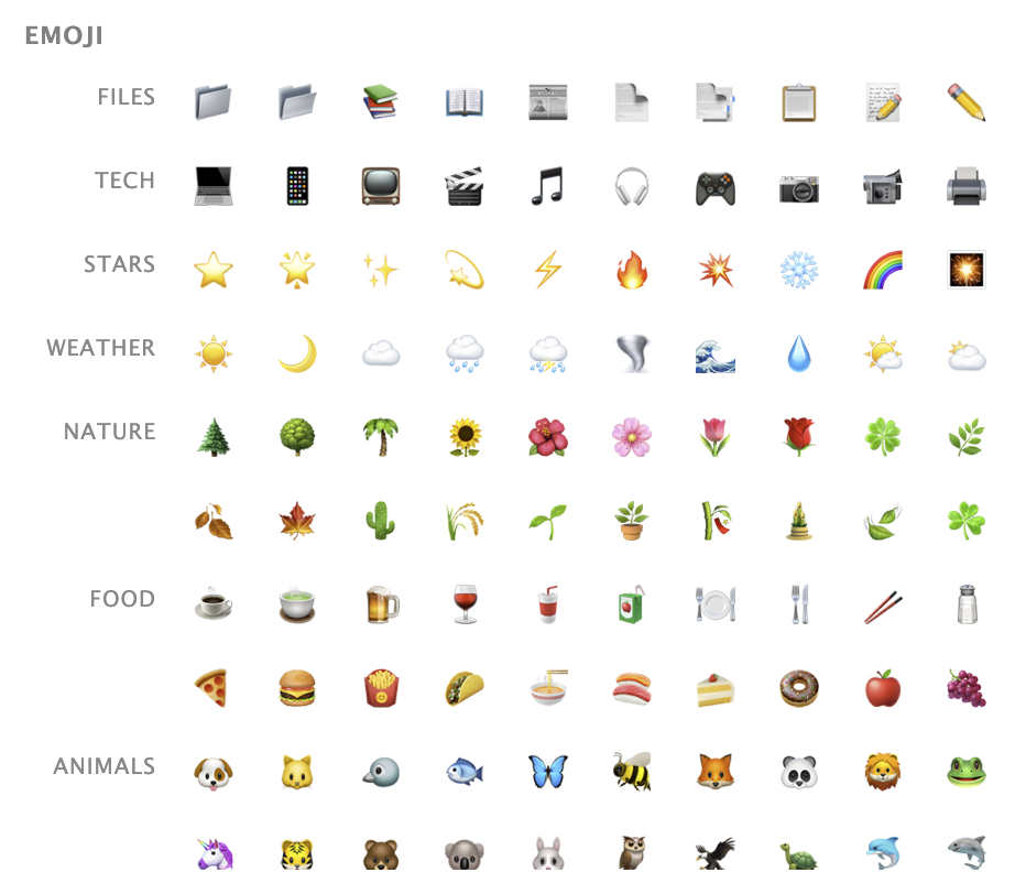 Emoji: Choose from 180 emojis organized by category. A basketball for sports feeds, a fork and knife for cooking, a newspaper for news—you get the idea.